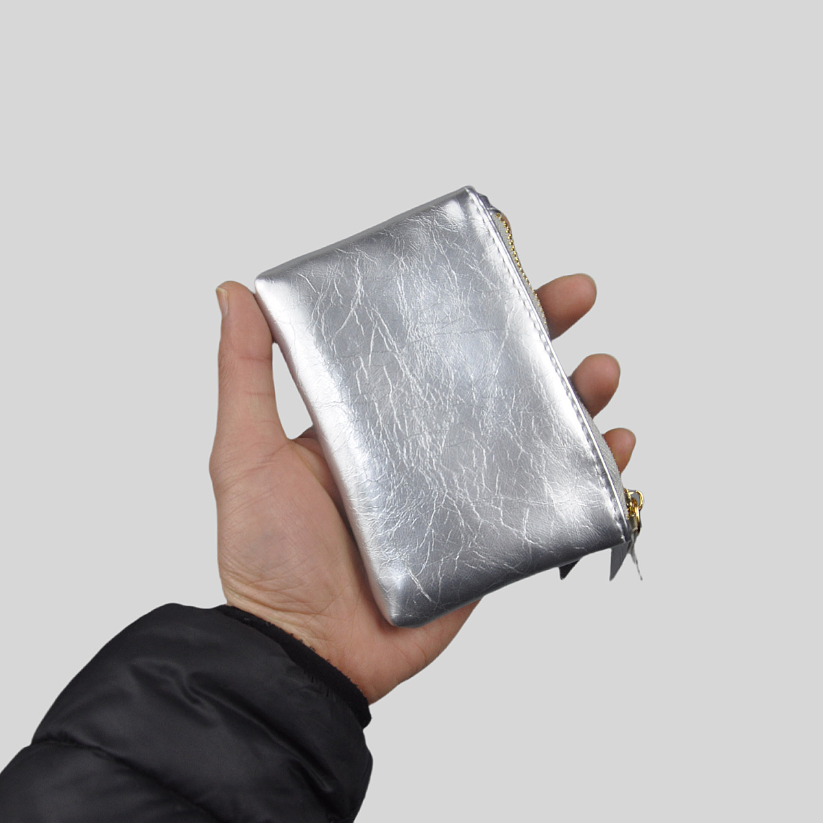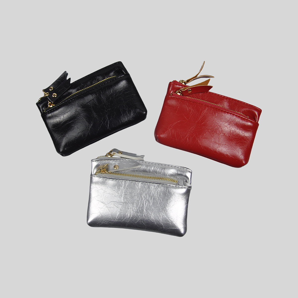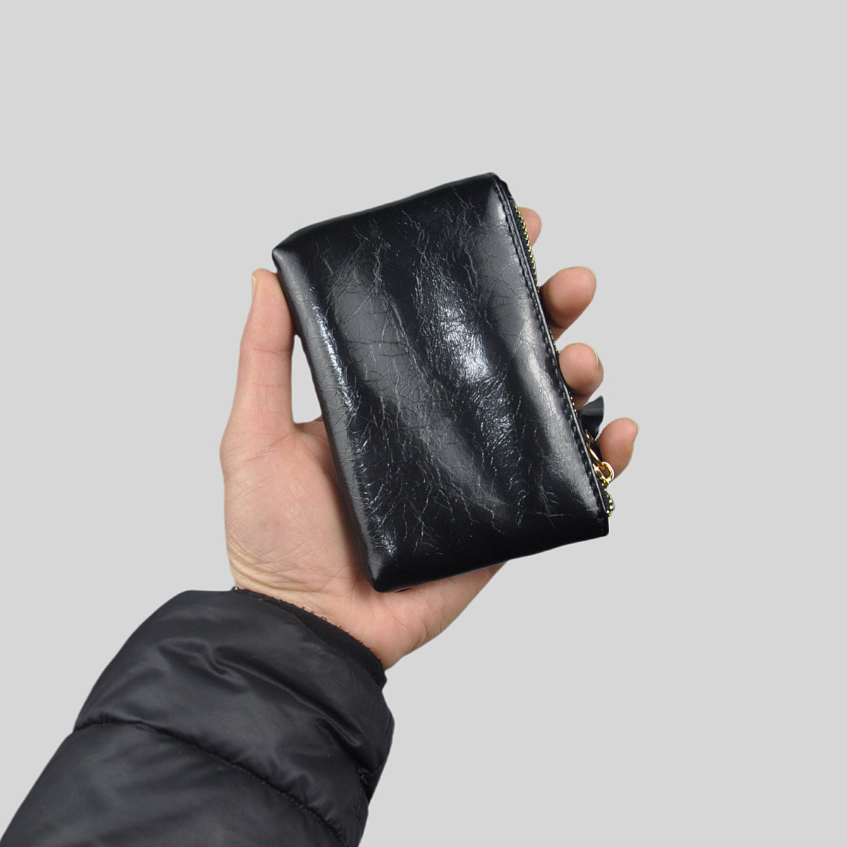 光沢のある合成革を使用した高級感あふれるコインケースです。