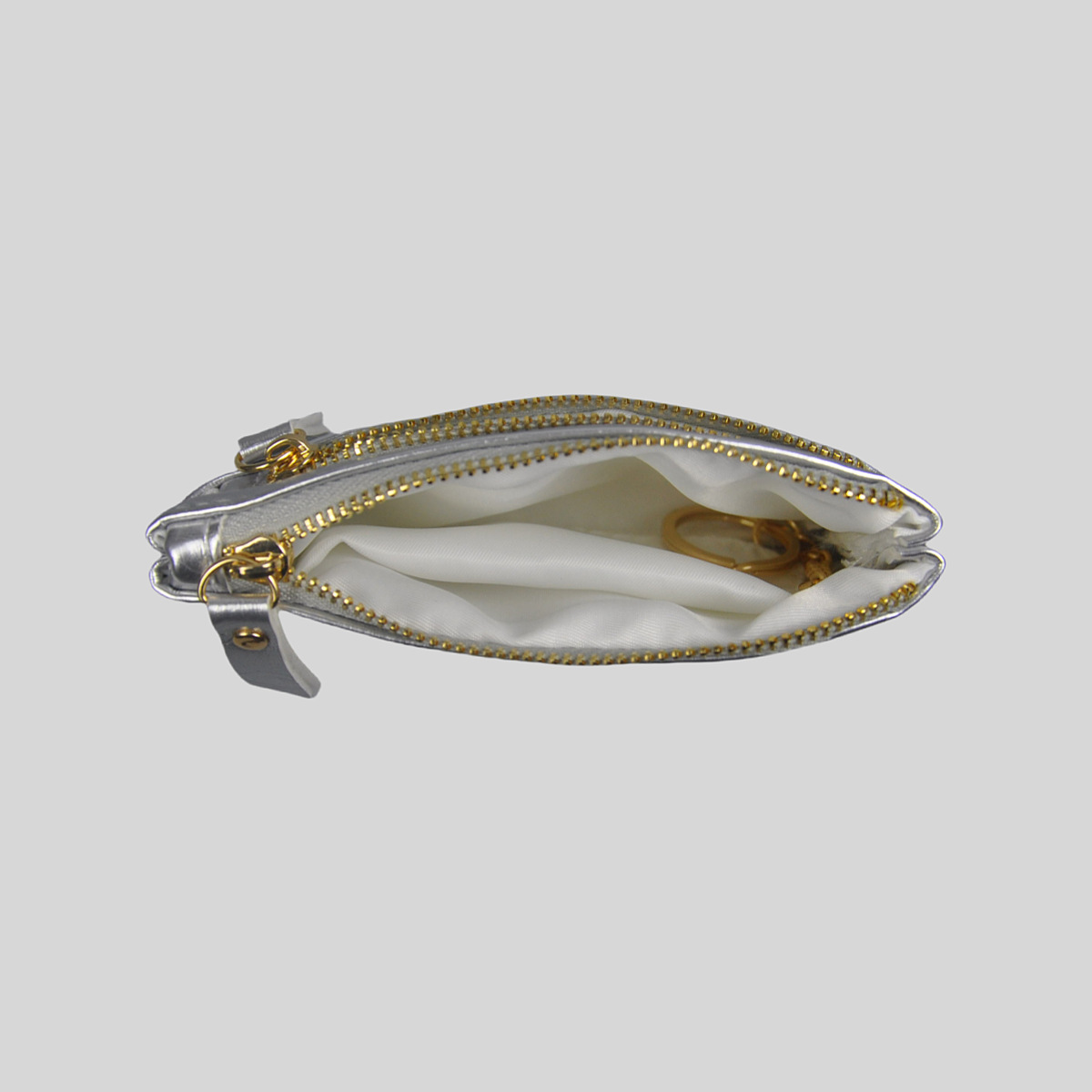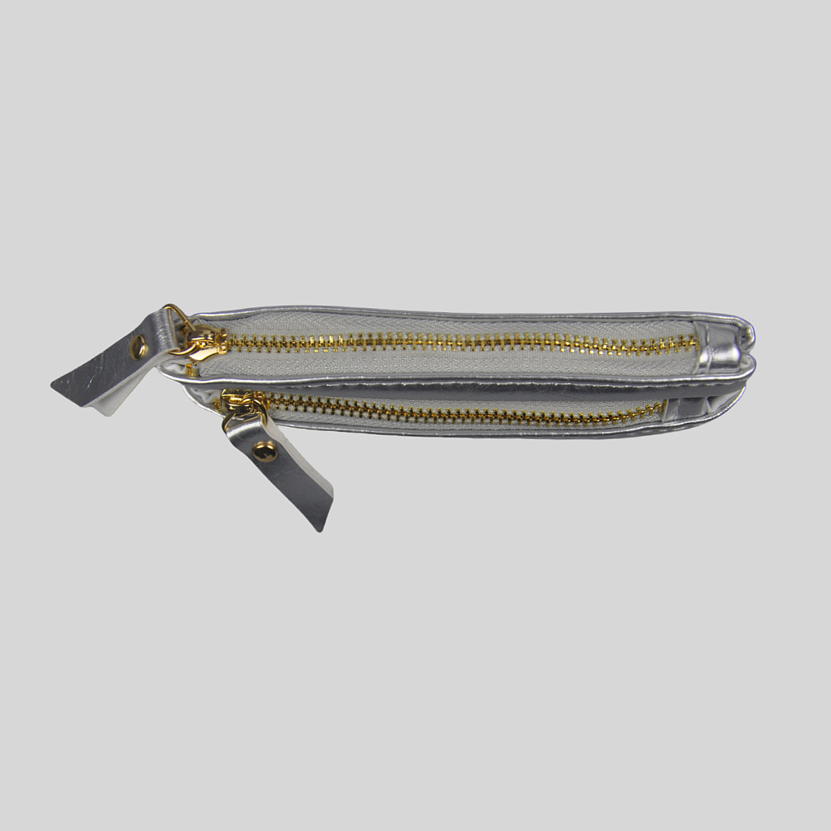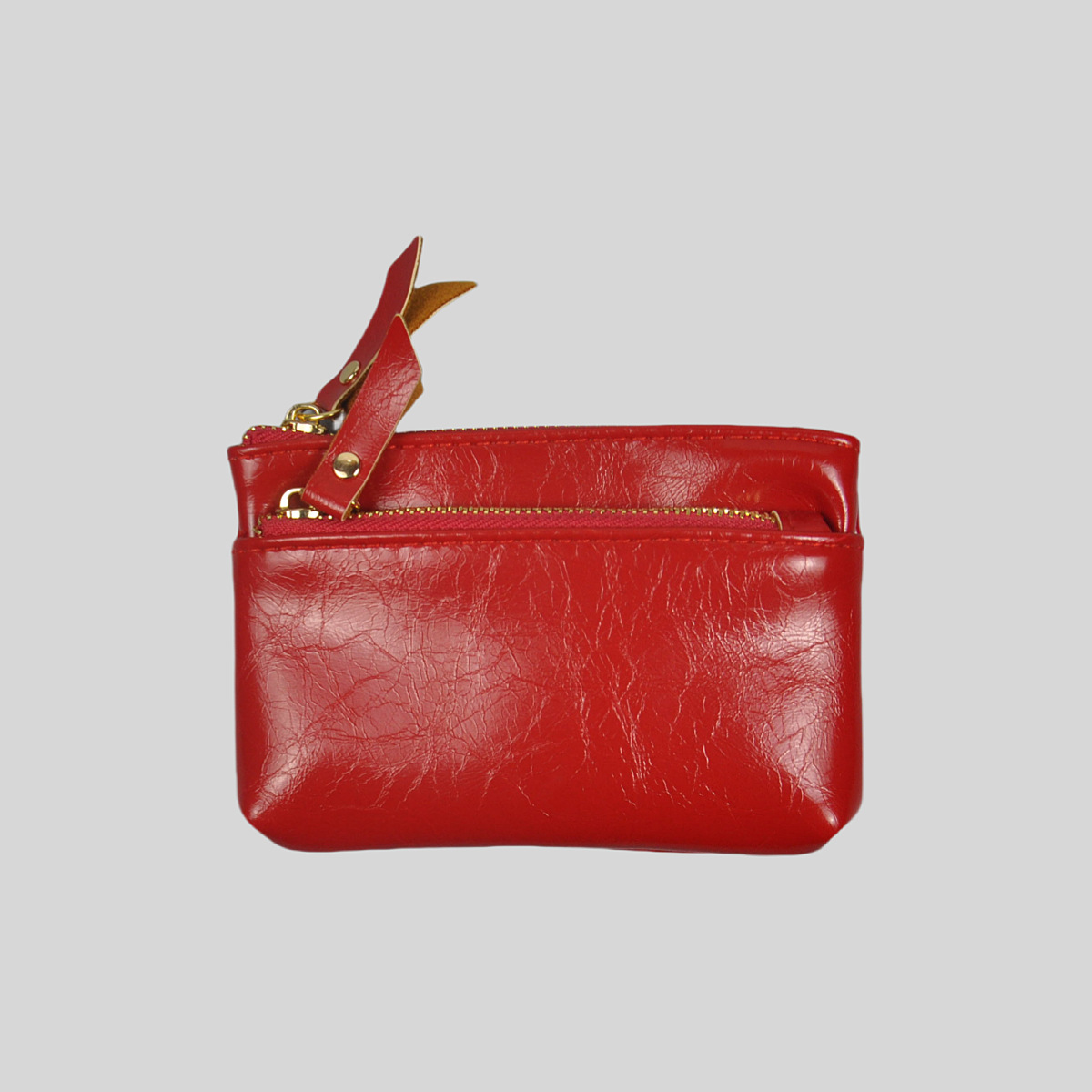 ダブルファスナー仕様で小銭とカードを分けて収納でき、整理整頓に便利な設計となっています。