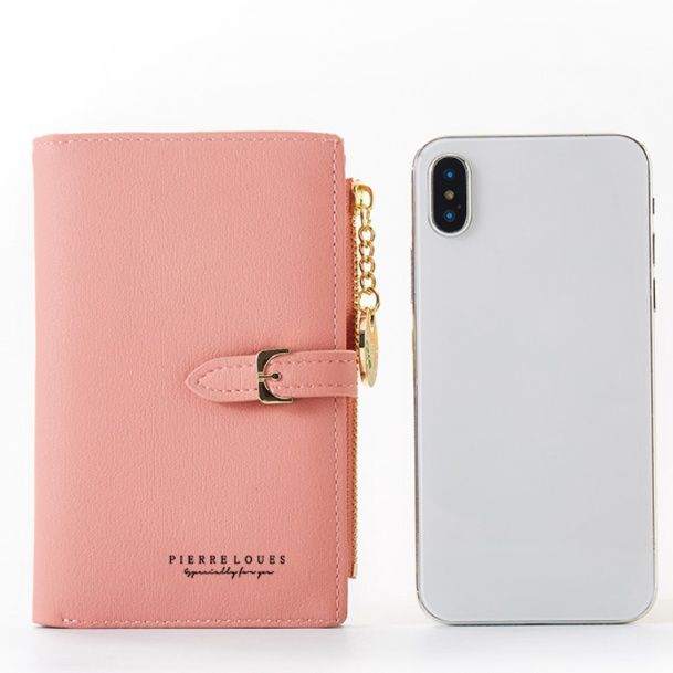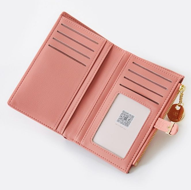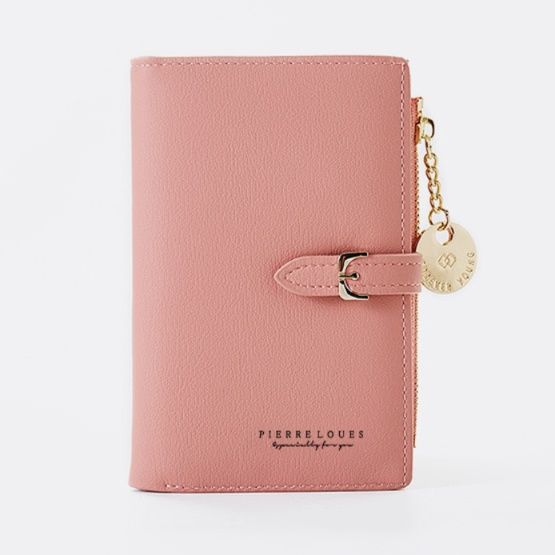 上質な素材を使用したレディース向けの三つ折り財布です。 コインケースとしても使える便利な小銭入れ付きで、カードポケットも充実しています。 スナップボタン式の留め具とチェーン付きチャームがアクセントになった、可愛らしいデザインが魅力です。 コンパクトなサイズ感で持ち運びに便利な、普段使いに最適なアイテムです。