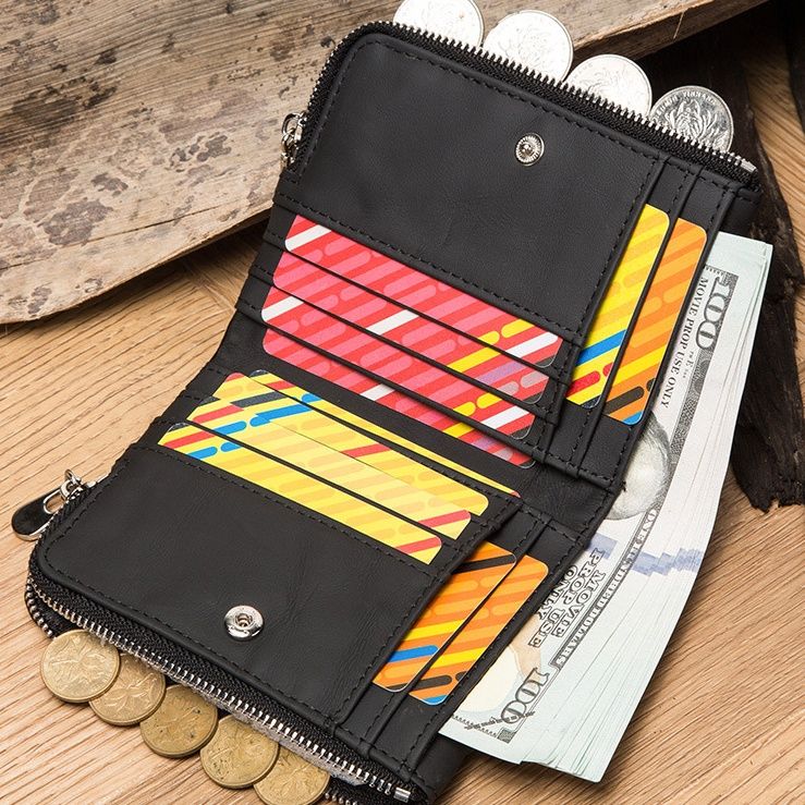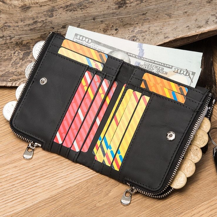 上質な本革を使用したメンズ向けの多機能な二つ折り財布です。 ラウンドファスナー仕様で中身をしっかり守り、コインケースとしても使える小銭入れを装備しています。 複数のカードポケットと紙幣収納スペースを備え、日常使いに必要な機能を凝縮しました。 シンプルで洗練されたデザインは、ビジネスシーンからカジュアルまで幅広く対応し、長く愛用できる逸品です。
