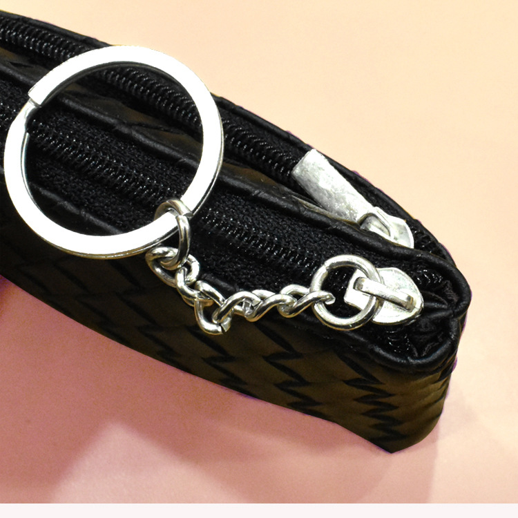 上質な編み込みデザインが特徴的なコインケースです。 ダブルポケット仕様でカードや小銭を分けて収納でき、整理整頓が簡単にできます。 取り外し可能なリングチャームが付いており、バッグに取り付けたり鍵をまとめたりと便利にお使いいただけます。 コンパクトながら収納力があり、普段使いからお出かけまで幅広く活躍します。 手触りの良い素材と洗練されたデザインで、長くご愛用いただける逸品です。