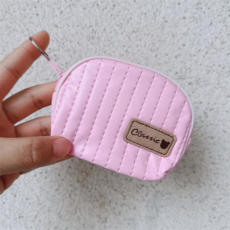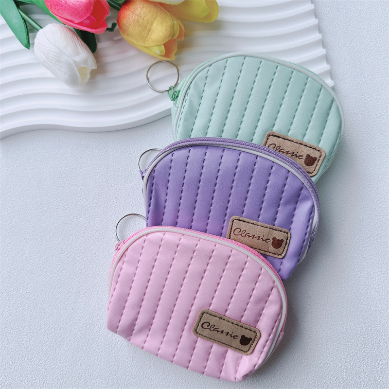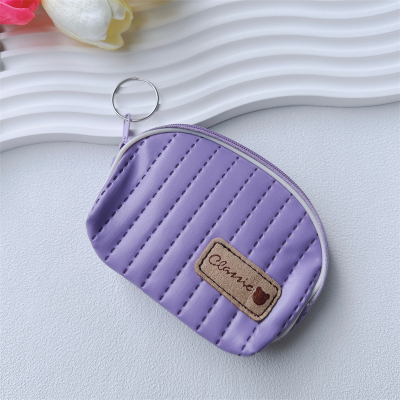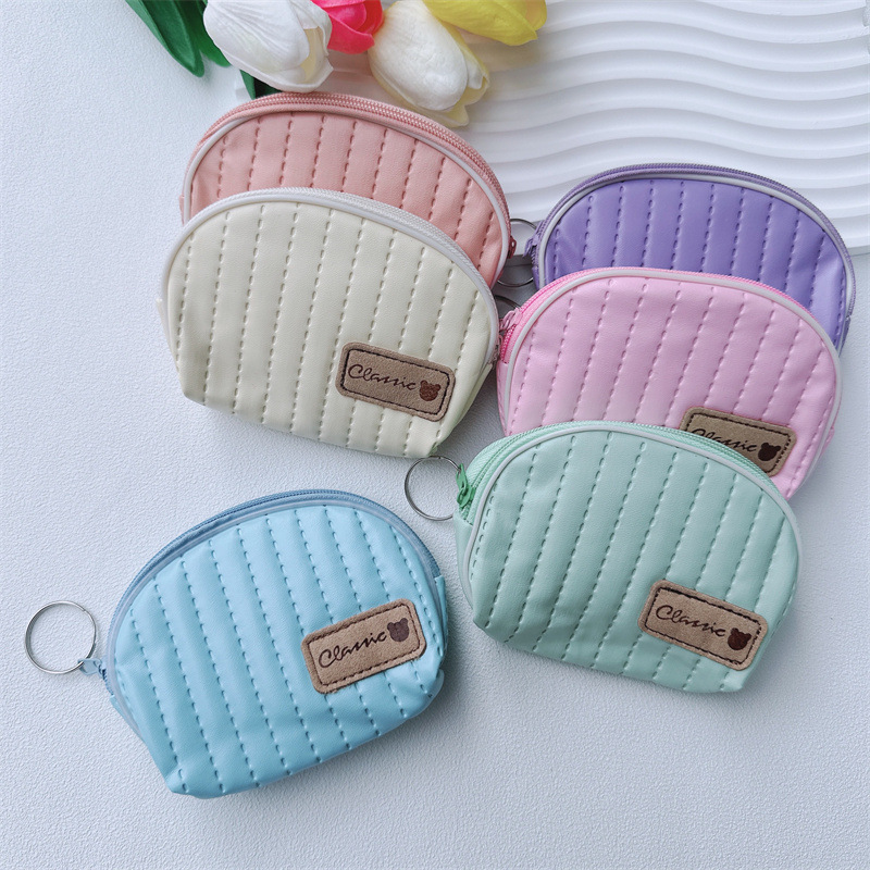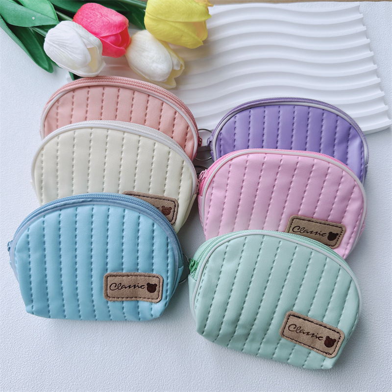 縦型のキルティングステッチが上品なシェル型のレディースコインケースです。 コロンとした貝殻のようなフォルムが愛らしく、手のひらサイズでバッグの中でもかさばりません。 ファスナー開閉式で小銭をしっかり守り、キーリング付きで持ち運びも便利です。 柔らかな合成皮革の素材感とステッチのデザインが、デイリー使いにぴったりなコインケースとなっています。 ちょっとしたお出かけやランチタイムに活躍するアイテムです。