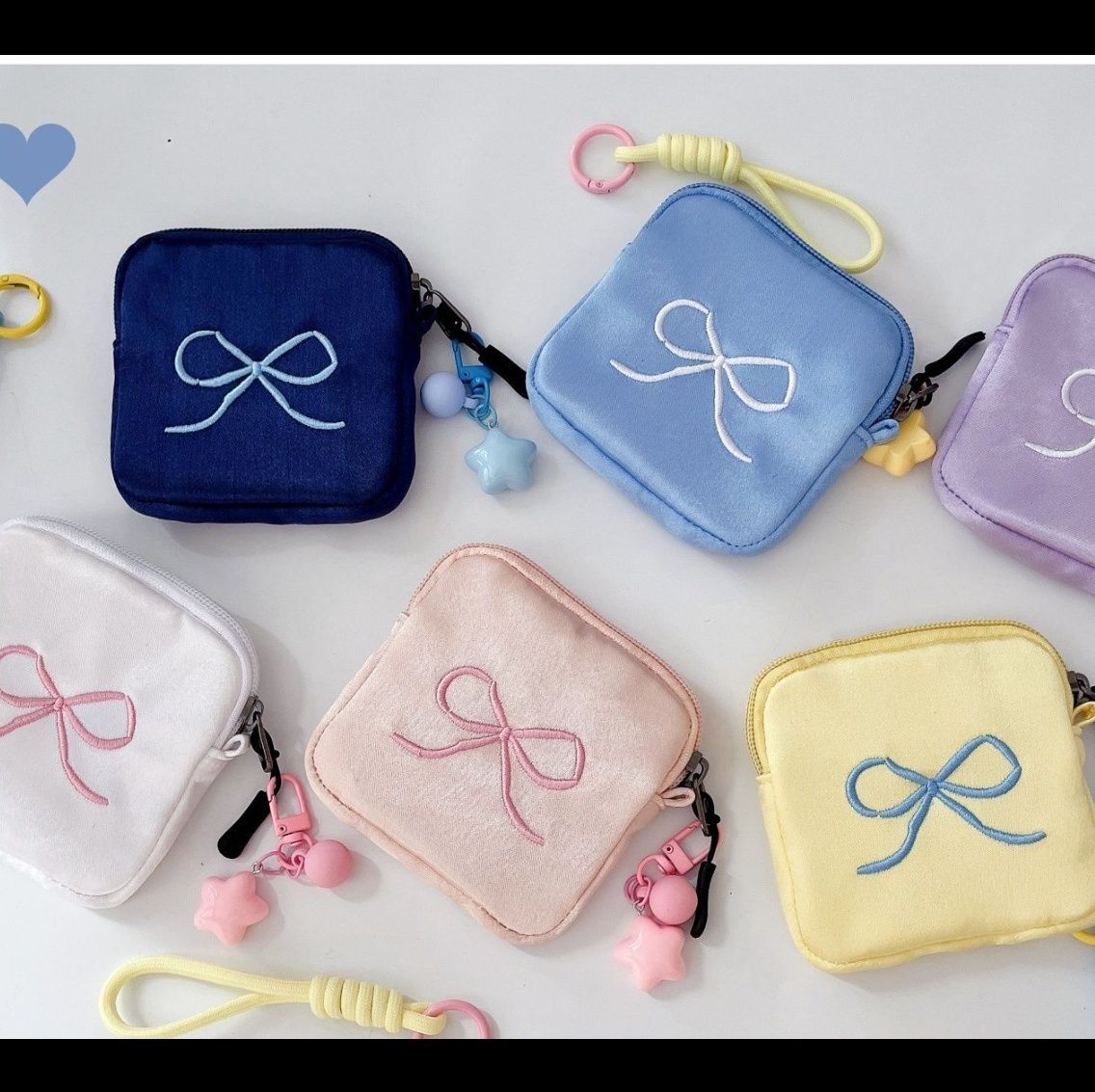 ファスナーには取り外し可能なストラップと可愛らしいチャームが付いており、バッグに取り付けたり手に持ったりと使い方も自由自在です。